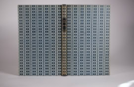 Axel Knudsen (1912 - 2004) began his studies with August Sandgren in 1933. After Sandgren’s death in the following year he worked with Julie Simonsen finishing in 1937. He established his own bindery in 1942 and was at the same location until 1997, when it was taken over by the Esbjerg Kunstmuseum. These photos are a sampling of his work in binding and his own paste papers, where he used traditional techniques and printing from designs he engraved. His work in decorated papers was noted early on by Park and others, and rightfully so.