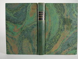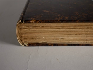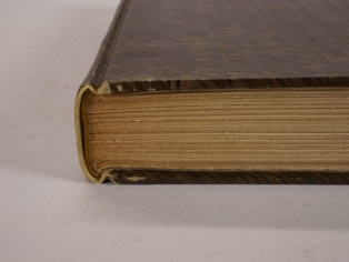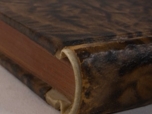 Concerned with the durability of paper bindings he started putting vellum at the head and tail of the spines and added vellum tips to the board corners. The vellum was almost invisible on the bindings. Later binders began using leather instead of vellum, probably for design reasons and because leather is easier to work with than vellum.